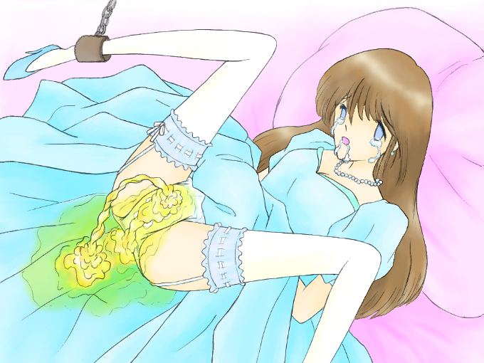 一服するため起き上がろうとした瞬間、美奈子が小さな呻き声をあげました。 「…ぅぅうぅっ…ぅぅぅうっ…」 力ない声とともに突然股間から液体が溢れていきます。 じょぼじょぼじょぼ… み、美奈子が失禁を始めました! 執拗な愛撫を受け続け、放心状態になった美奈子の身体は、感覚が無くなってしまったのでしょう。 ダラダラとはしたなくお漏らしをしだしました。 じょぼぼぼぼぼ〜〜〜ッ。 次第に液体は大量になり飛び出てきます。 パンティでは押さえ切れずに大きな弧を描いて放尿していきます。 じょぼじょぼぼぼじょぼ〜〜〜ッ じょろじょろじょろーーーーー びちゃびちゃびちゃ・・・ ドレスの上でオシッコが飛び跳ねます。 綺麗なパステルブルーのドレスがどんどんと濡れ、オシッコが広がっていきます。 み、美奈子がお漏らしを… ベッドの上ではしたなくドレスを濡らしながらお漏らしを… ちょろちょろちょろちょろ・・・